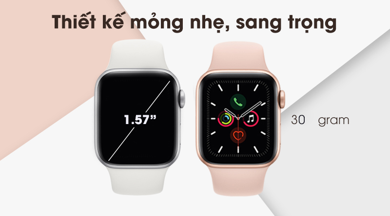 Thiết kế của đồng hồ không có nhiều thay đổi ngoại trừ dòng chữ Apple Watch S5 được khắc bên dưới mặt đồng hồ, đường nét được hoàn thiện tinh xảo làm nên sự đẳng cấp của Apple Watch.